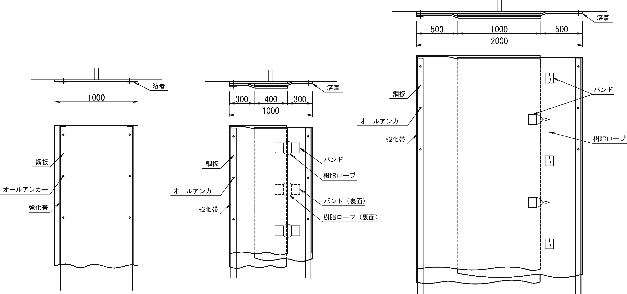 左図:シングル型(S1)、中央図:ラップ型(R1)、右図:ラップ型(R2)