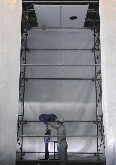東京大学生産技術研究所・川口研究室の温熱環境計測実験に協力し、膜天井を設置すると室内の気流をコントロールして省エネルギー効果を期待できることを確認しました。