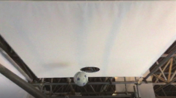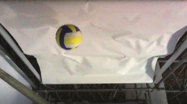 体育館などの膜天井にボールが衝突した場合を想定して、様々な条件で実証実験を行い、すべての膜材料がどのような工法においてもボール衝突によって破損がないことを確認しました。